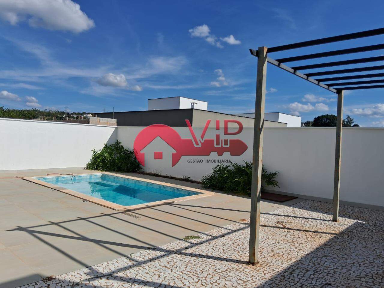 01 sala de estar, 02 suítes com armários, 01 suíte, 01 cozinha, 01 lavanderia, área gourmet, piscina, 02 vagas de garagem.